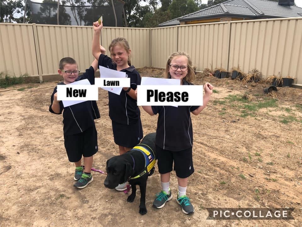 Ivan and Kathlyn Crisp hated looking out at the barren clay ground which surrounded their Strathfieldsaye home. They desperately wanted to replace it with a small area of instant lawn to improve the usability of their space for their three kids (aged 7, 8 and 10) and their Vision Australia foster dog Jessie, to run around on.