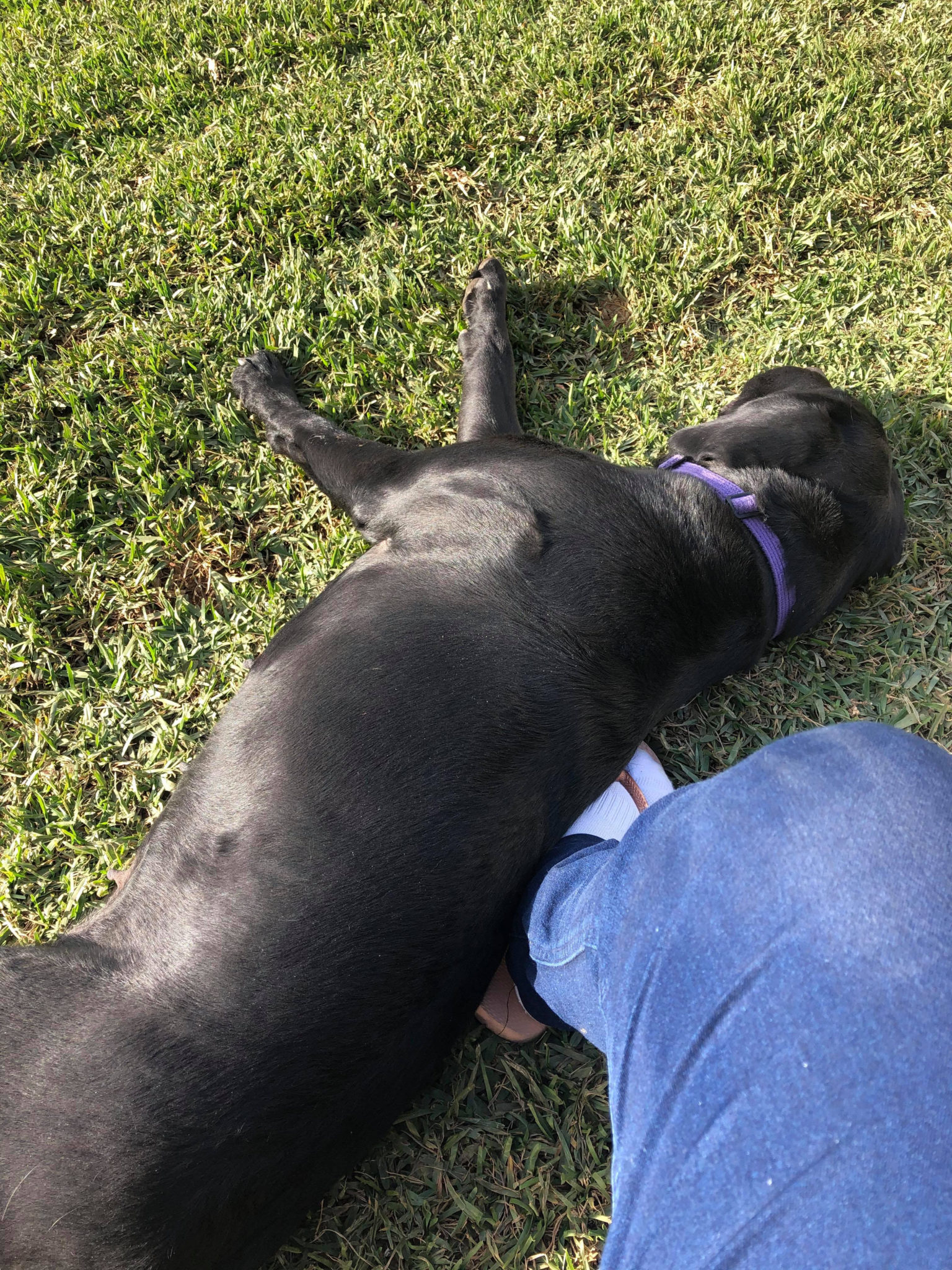 Jessie the Vision Australia Dog Sunning herself on her new Coolabah Turf